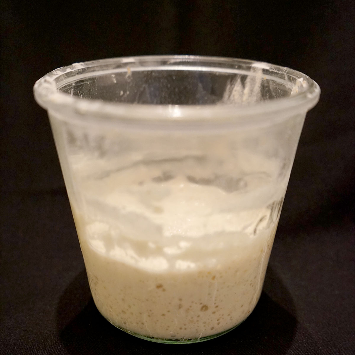 Day 1: In a non-reactive container, combine 50 grams (1.76 ounces) of whole wheat flour with 50 grams (240 ml) of cool water, stirring until well combined. Cover the container loosely and let it sit at a warm room temperature (about 70°F or 21°C) for 24 hours.